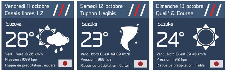 Vous pouvez suivre l’évolution de la météo en temps réel durant tout le week-end du Grand Prix du Japon grâce à notre partenaire Célinium en cliquant sur ce lien.